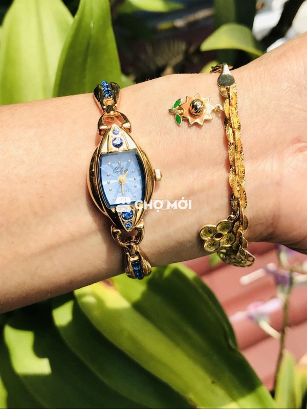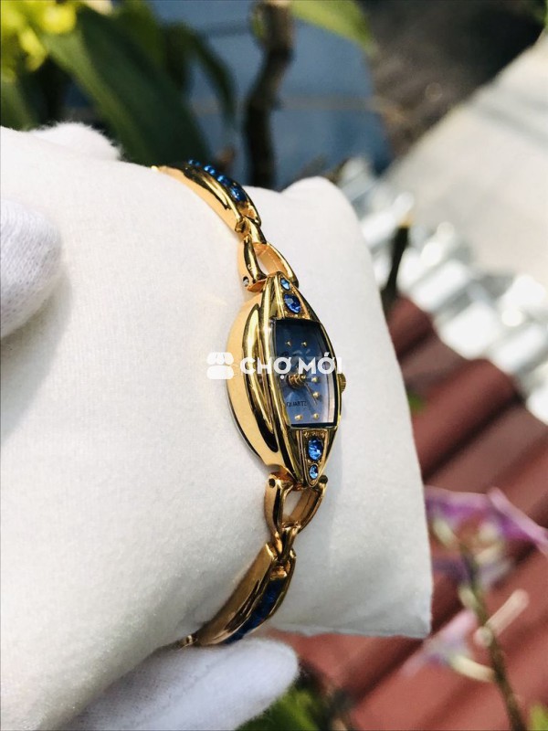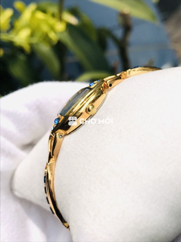 🎁 Dây và vỏ bằng thép không gỉ mạ vàng dày, nước vàng vàng ươm, mặt kính còn sáng đẹp, tất cả khuy khóa, dây, đáy, núm nguyên zin. Đặc biệt đồng hồ được thiết kế cực kỳ đẹp, với nền mặt màu xanh phối đá xanh siêu xinh, bộ kim và cọc số vàng sắc nét nổi bật, nước vàng còn sáng đẹp, đeo như 1 lắc vàng, tổng thể đẹp sang xinh lắm luôn.
