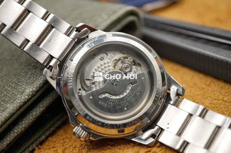 Bên trong là máy cơ automatic in-house Orient, hoàn thiện đẹp, rotor khắc logo Orient Star, lộ máy qua đáy kính – đúng tinh thần chơi đồng hồ cơ Nhật.