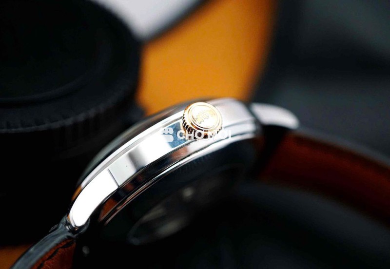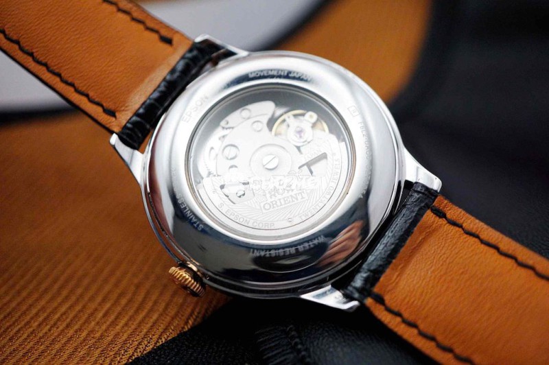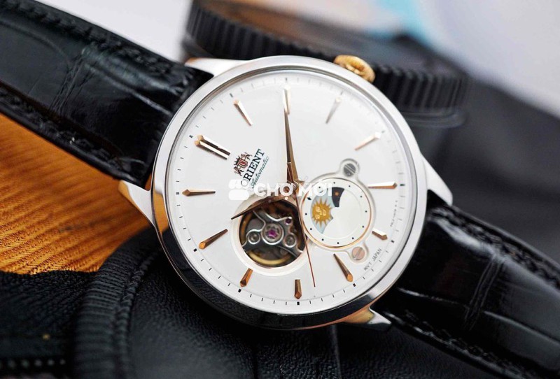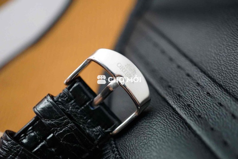 • Dây: Da đen dập vân, khóa kim Orient khắc logo