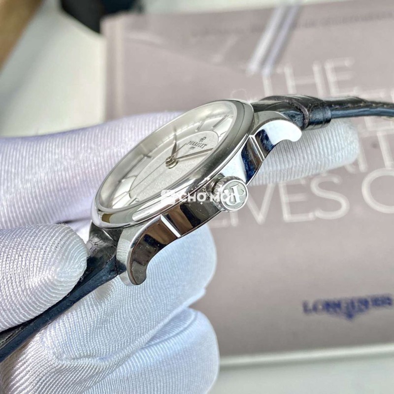 - Mặt đồng hồ màu bạc, dây đen lịch lãm.