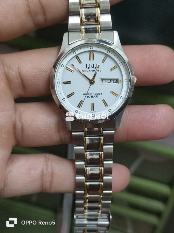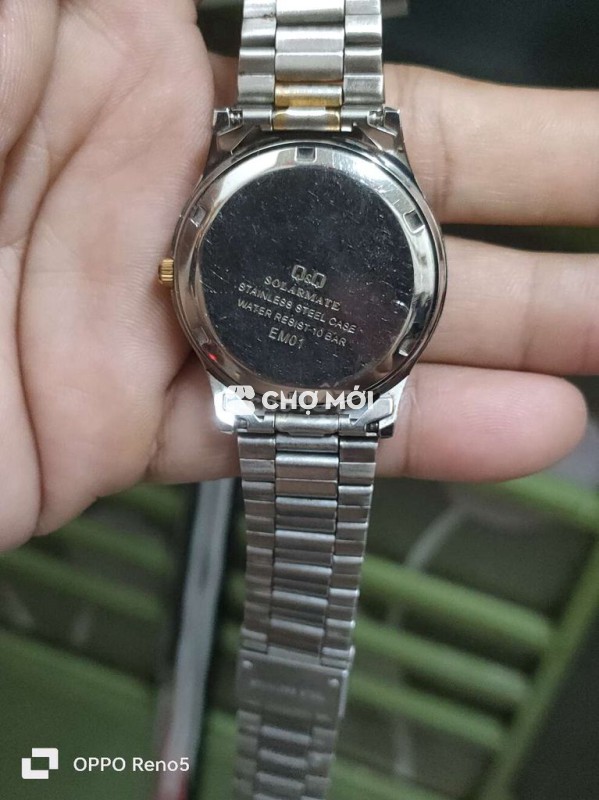 Đồng hồ Q&Q Solarmate EM01 unisex, thiết kế trẻ trung, năng động. - Chất liệu thép không gỉ bền bỉ. - Màu bạc, vàng demi sang trọng. - Chống nước 10 BAR, thoải mái sử dụng hàng ngày. - Size mặt 35mm..2 lịch góc 3h.. - Giá bán : 400k