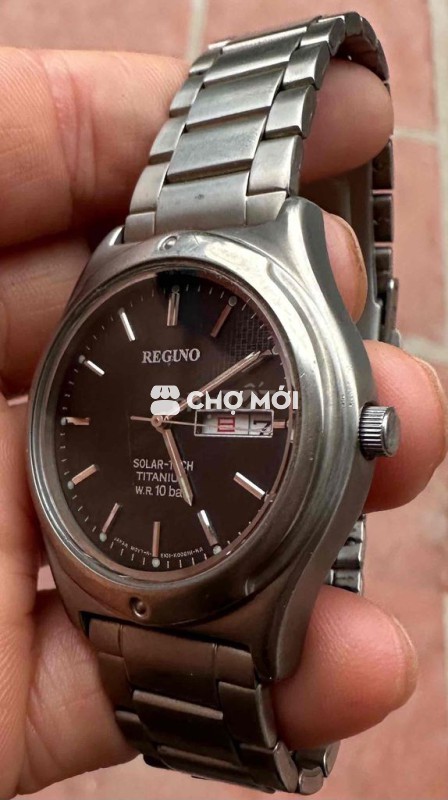 Đồng hồ Pin năng lượng Reguno, thép titalium bền vĩnh cửu, size mặt cả núm 38, size dây 18, ô lịch thứ và lịch ngày, kim và cọc số dạ quang Giá 190k miễn phí ship, có ship hàng