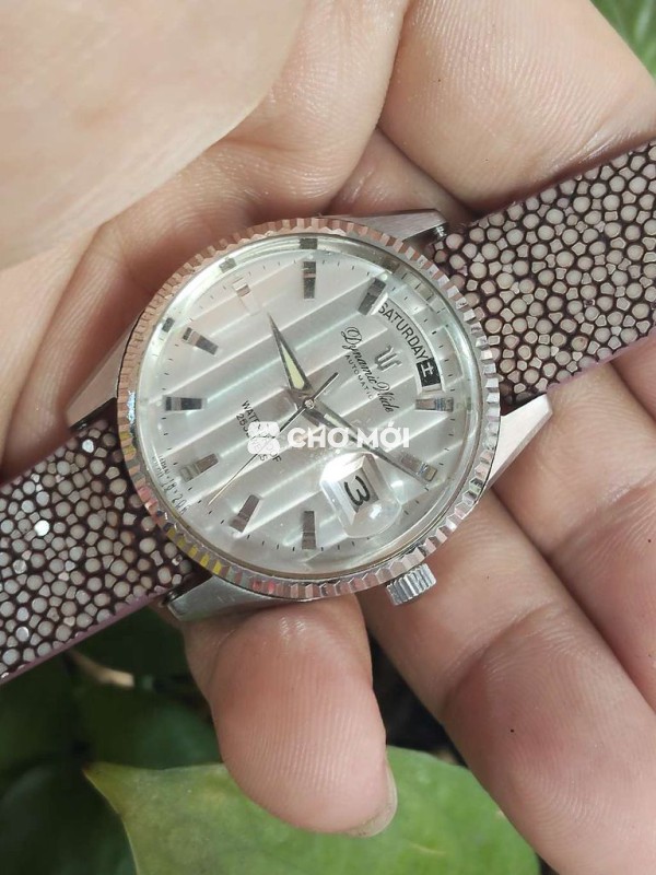 Chốt đeo Tết AE ơi Mặt gợn sóng tole rất đẹp Size 36mm phôm rô lét niền khía Vỏ thép không gỉ lịch thượng Lịch ngày lịch giật nhanh Máy tự động rất đẹp và chuẩn Dây da ca đuối xịn sò Mời AE 2 đồng 2 ạ.