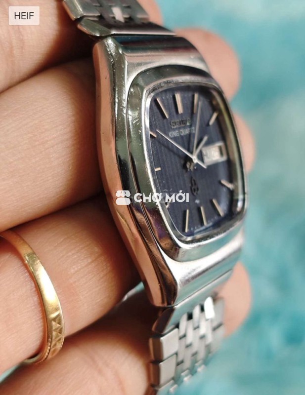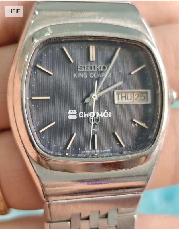 Đồng Hồ SEIKO KING QUARTZ TANK Size 34.5X40.5 dây 18cm Dial xanh đen thớ dọc. Kính lỗi có vài vết mẻ. Dây seiko không phải dây rin KQ Chức năng lịch thứ ngày hoạt động bình thường.