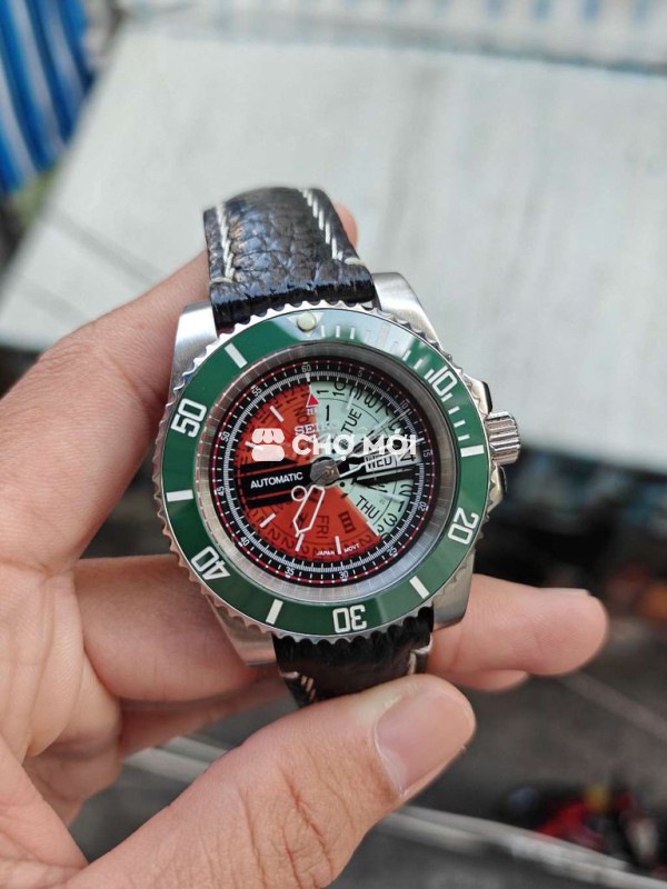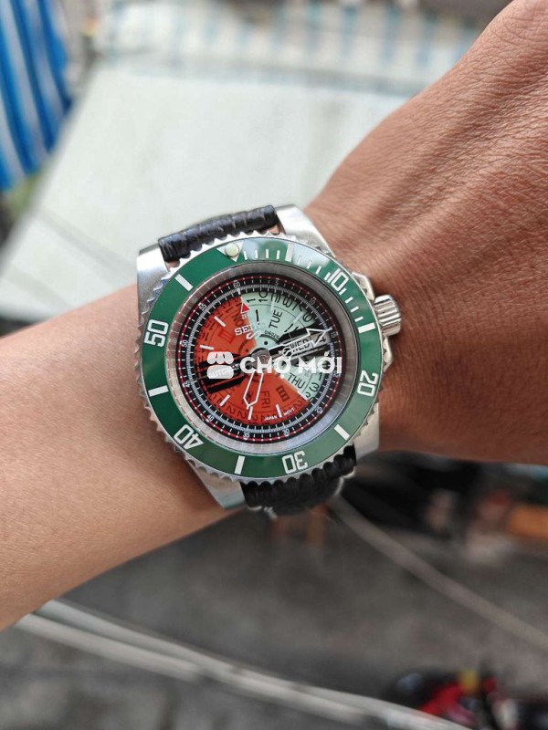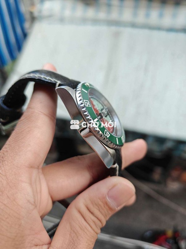 Seiko Mod Skeleton lộ xương. Mặt trong suốt. Máy nh35 24j chạy chuẩn. Độ mới 98% kính có 1 vết trầy. -- Size 40mm niềng xanh cực đẹp Núm xoáy nắp xoay 1tr800