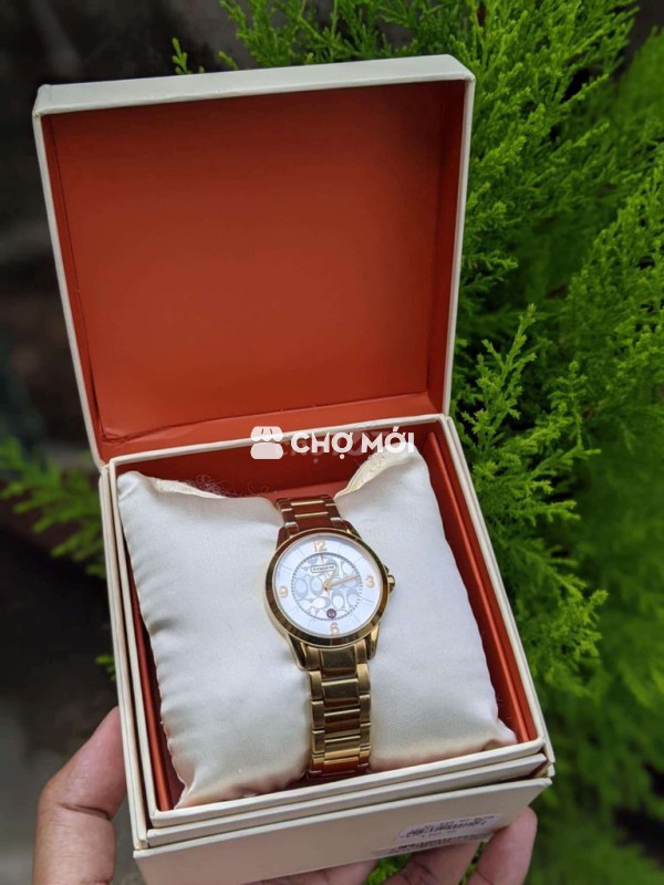 Đồng hồ thời trang COACH nữ, Máy pin.rất đẹp, chạy ngon lành.Dây khoá zin Đầy đủ hộp sách, Size 3,1 cm. Máy lên tay rất đẹp Hô nai biên hòa đông nai