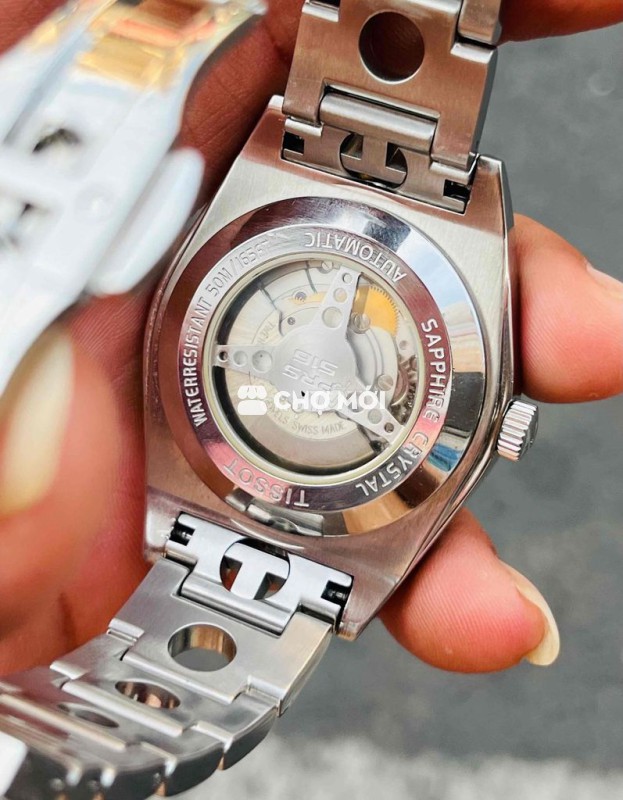 Toàn thân thép không rỉ, lộ đáy, dây và khoá zin có logo.