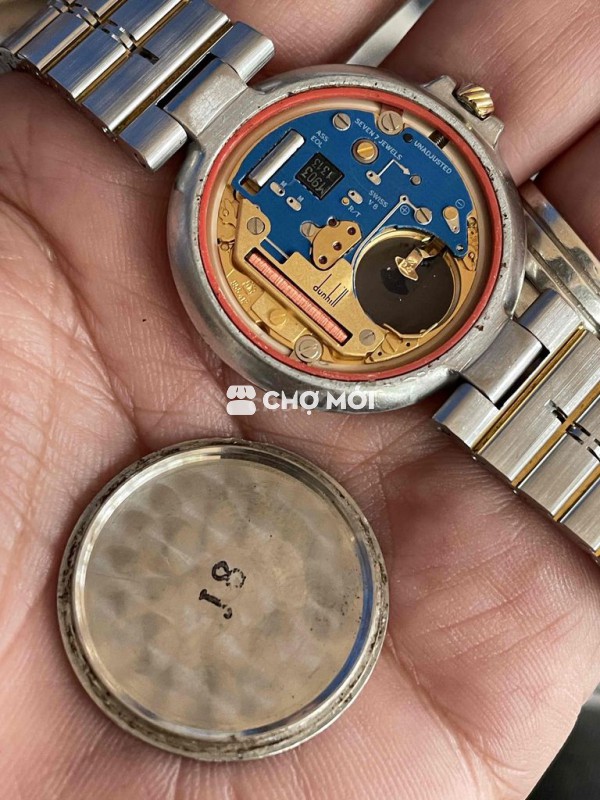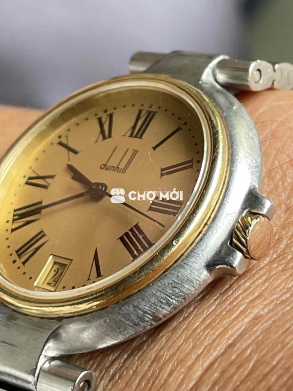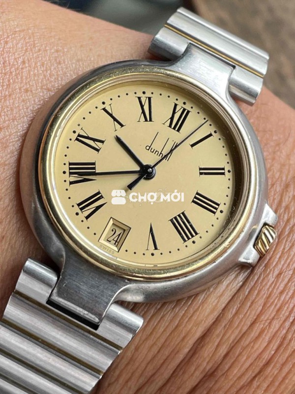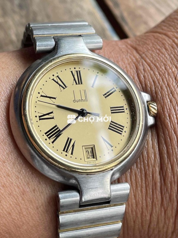 Dunhill sz 32mm SWISS MADE QUARTZ - anh em tay 17cm đổ lại lưu ý . Tình trạng nguyên zin liền lạc nước vàng còn đẹp . Máy chuẩn hãng dập hiệu (V8) hoạt động chuẩn xác . Dây full mắt cho anh em tay 20cm