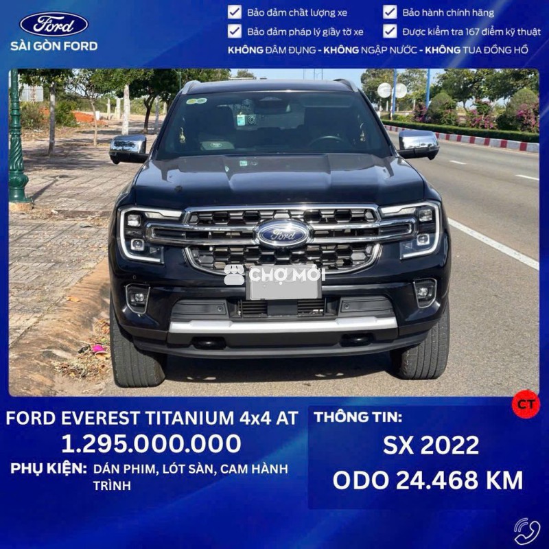 Ford Everest Titanium 4x4 AT màu đen, sản xuất 2022, chạy 24.468 KM. - Xe 7 chỗ rộng rãi, động cơ mạnh mẽ. - Trang bị nhiều tính năng an toàn, tiện nghi. - Giá 1 tỷ 295 triệu.