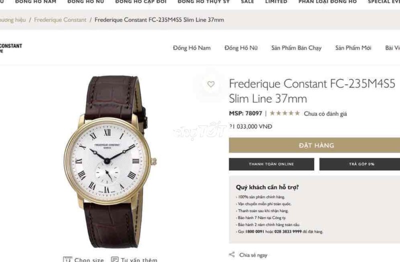 ĐH Nam : Frederique Constant FC-235M4S5 Slim Line, mạ vàng Pvd - Size 37mm siêu mỏng...