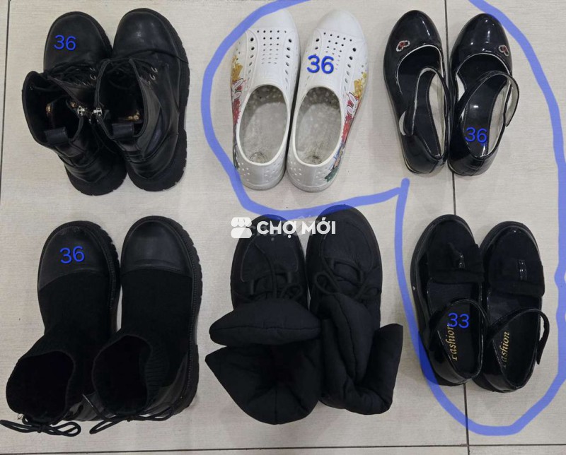 * Giày bé gái màu đen hình tim size 36 (chỉ mang 1 lần) * Giày nơ đen size 33 (chưa sử dụng) * Giày nhựa siêu nhẹ không thấm nước size 36 --- Giá 50k/đôi, mua 2 tặng 1