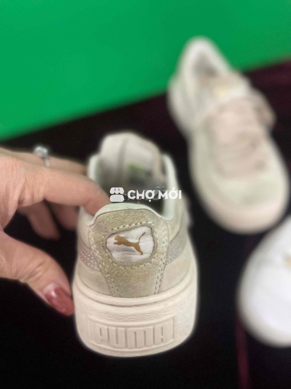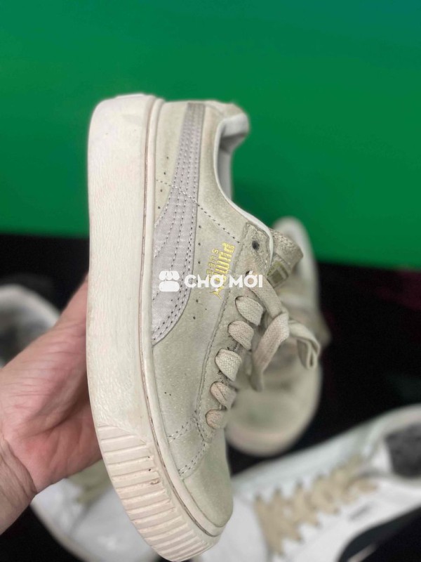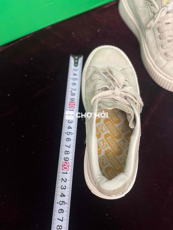 Giày thể thao Puma cho bé, màu trắng kem. - Size 33-34, phù hợp cho các bé. - Giày như hình, cần vệ sinh lại.