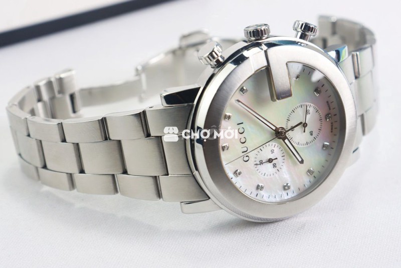 Đồng Hồ Nam : Gucci Chronograph 6 Kim, mặt xà cừ, cọc số đính Kim Cương, bản dây thép chất đẹp...
