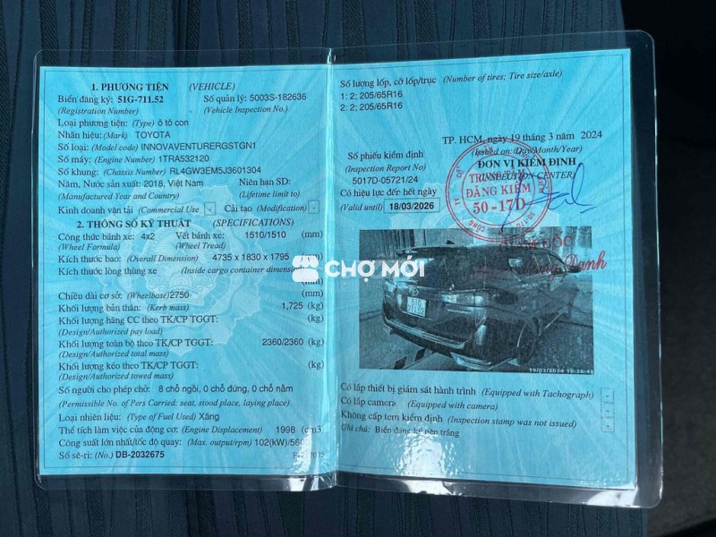 INOVA VENTURER sx2018 Số tự động chạy 86.000 xe gi
