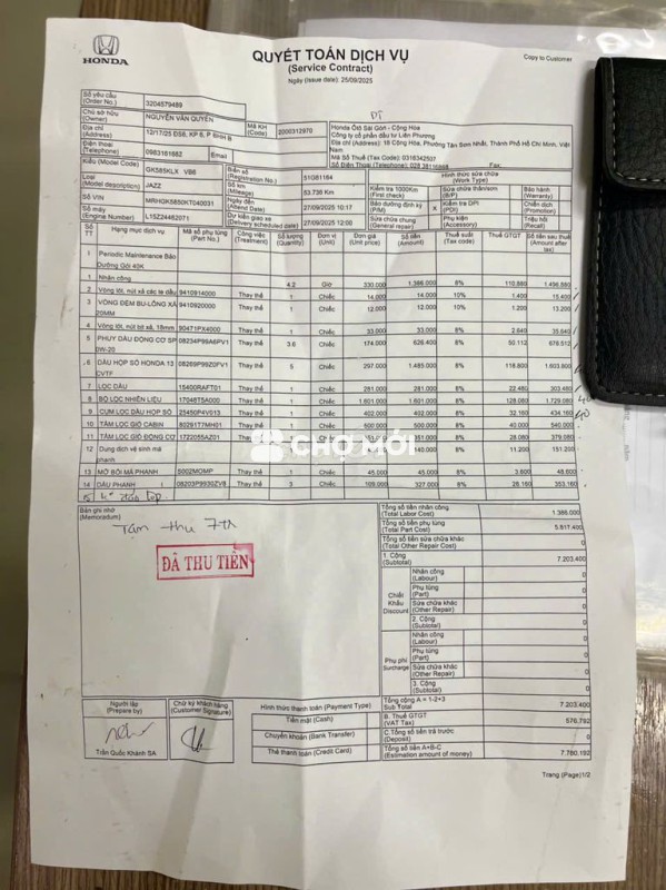 Số Km đã đi:54000