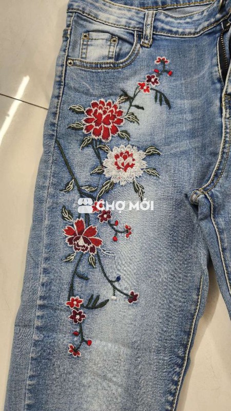 Quần jean nữ Thêu hoa Size 30 Dài 9 tấc Jean xanh