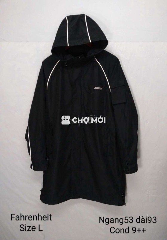 Size L. Dáng dài. Số đo ghi trên hình Chất gió dầy dặn. Lót toàn áo. Mũ liền. 2 túi sườn. Túi tay.túi trong. Độ mới 95% ko lỗi lầm Cảm ơn mn.