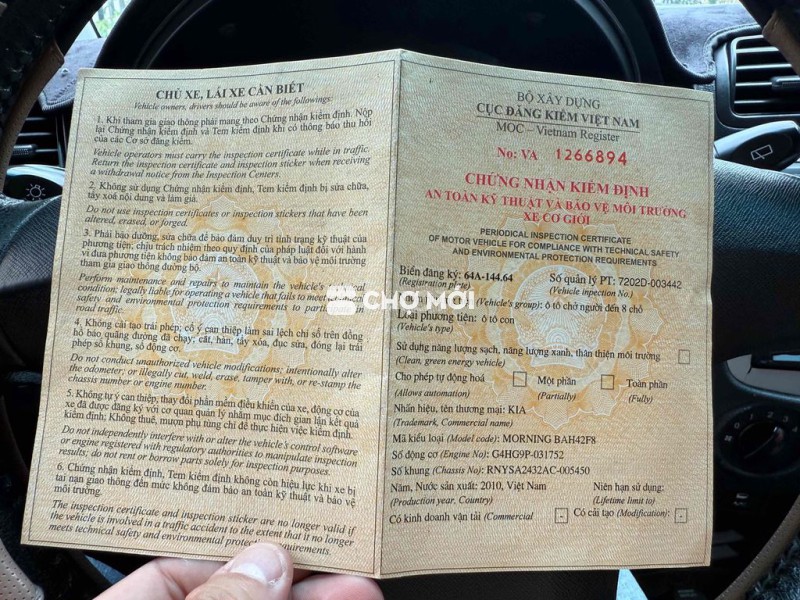 CẦN BÁN: KIA MORNING. MT. ĐỜI 2010. Xe gia đình sử dụng kĩ. Nên còn rất đẹp. Máy số nguyên Zin. Nội thất Zin đẹp. Cammera đầy đủ. Đăng kiểm mới xét. 4 võ khá. Chính chủ bán. Bao ủy quyền. Hoặc bao kí mua bán. Rút hồ sơ về cho