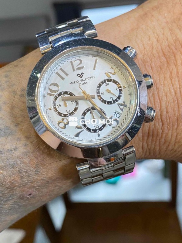 Mariô Valentinô hịu Ý Vỏ dây thép đúc nặng tay Mặt trắng,số sáng nổi kim lanh,6kim 3cốt 1lịch Chornoghap quăng kim Size 39 Cơ chế pin Tổng thể all zin như ảnh Dzá xchăm ***