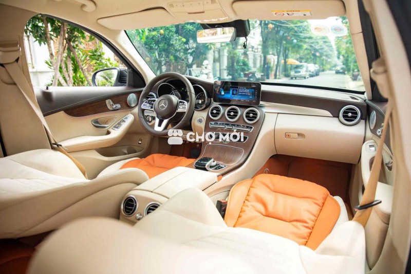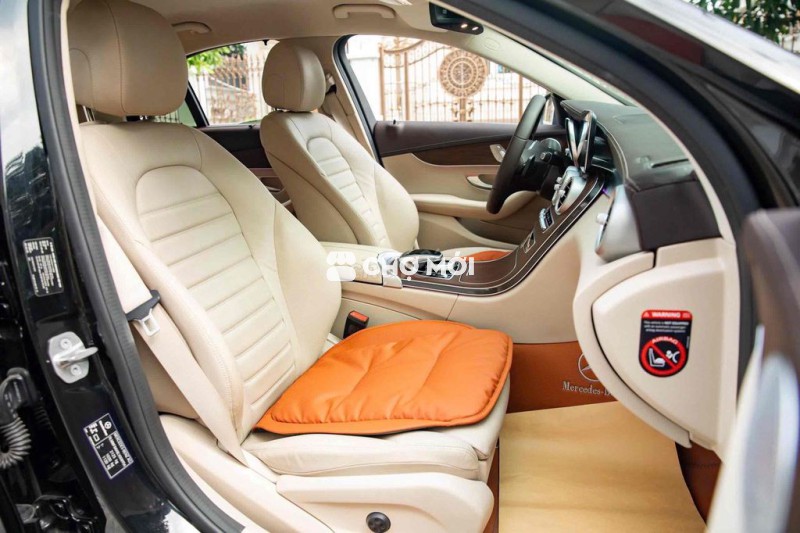 ✨ Mặt táp-lô & và thành cửa bọc da ARTICO cao cấp, ốp bệ cửa phát sáng với dòng chữ “Mercedes-Benz”.