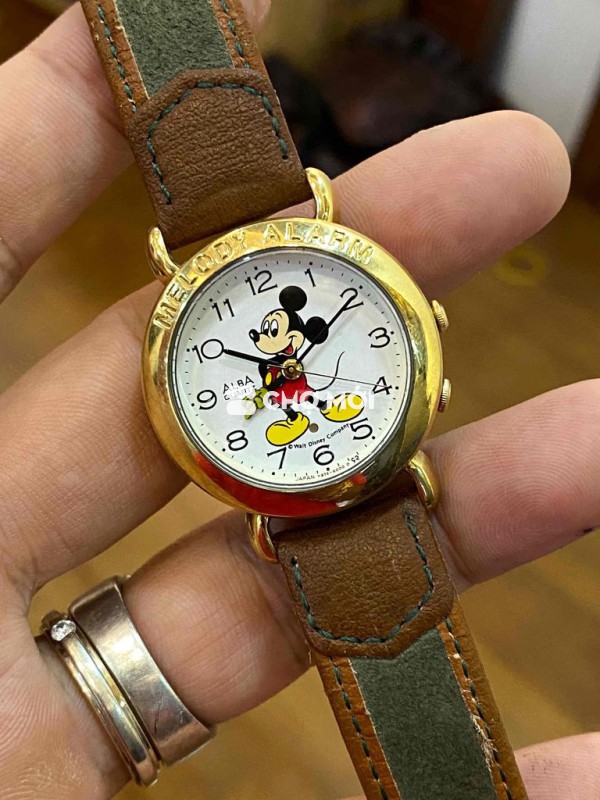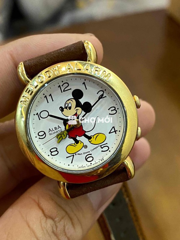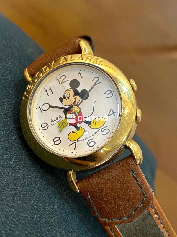 Míckey Reo Alba tập đoàm Sêikô chính hãng Vỏ mạ vàng dây da xịn Mặt trắng hình Míckey số học trò,kim đen,kim reo cánh tay Size 30 cho nữ hay bé Cơ chế pin có chỉnh arlam reo chuông nhạc Tổng thể mới đẹp Dzá xchăm tỉu học ***