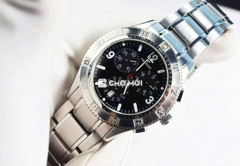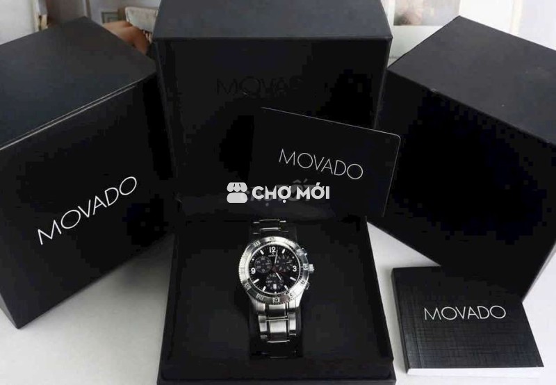 ĐH Nam : Movado 6 Kim Chronograph, mặt đen, bản dây thép, size 38mm Fullbox...