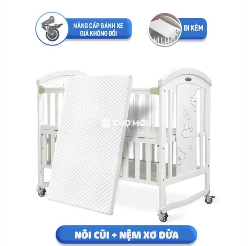 Mình pass nhanh nôi cũi gỗ trắng chilux giá 1tr5. Tặng quây nôi lưới hình ngôi sao rất xinh. Tặng nệm xơ dừa + 2 grap nệm mới tinh. Pass nhanh không kì kèo ạ, mình hổ trợ ship 30k ưu tiên bạn tới tận nơi lấy mình fix thêm. Zalo: *** D/c: toà Orchid 1, cc Hà Đô Centrosa, số 200 đường 3/2 quận 10