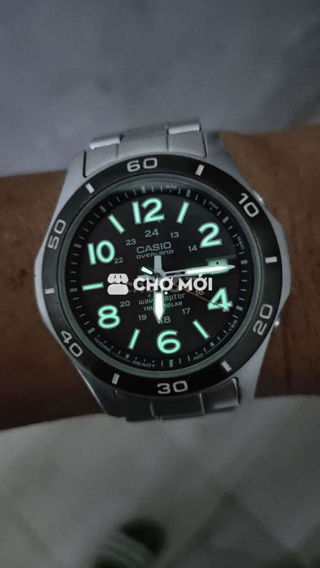 Casio overland pin năng lượng cực kỳ khỏe chạy chuẩn lịch vạn niên báo thức kim cọc dạ quang sáng rực dây vỏ full thép sáng bóng đồng hồ đẹp như mới chống nước bơi lội vô tư