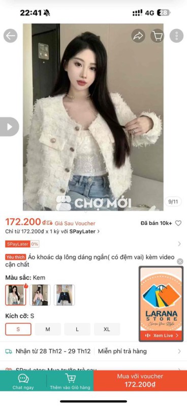 Áo Khoác,Size S,Màu Kem,Mặc 2-3 lần,Ảnh số 1 là ảnh thật