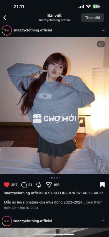 sweater snazzy size XL xám mới mặc được 2 lần