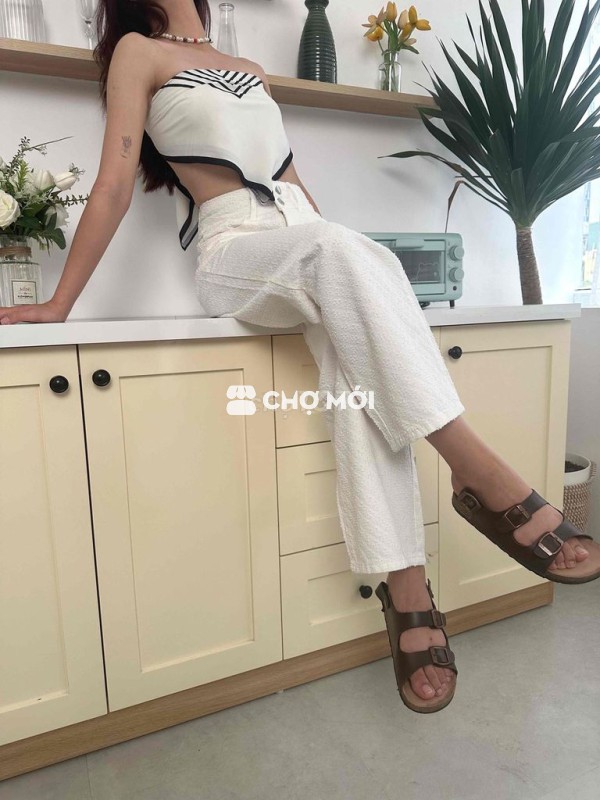 Quần bò nữ Vải Xanh Trắng