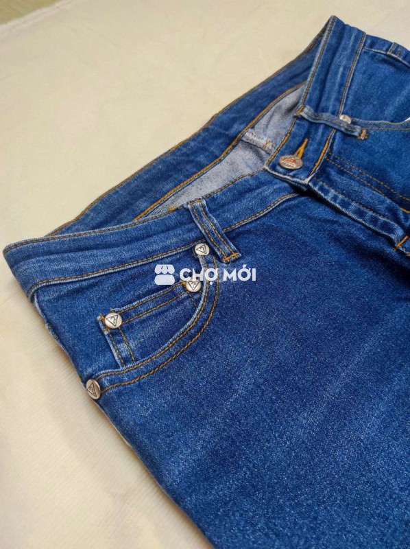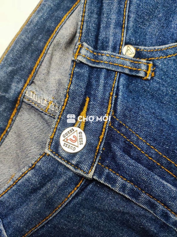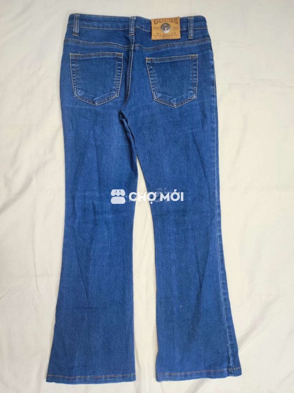 Quần jean nữ Guess màu xanh, chất liệu jean bền đẹp. - Độ mới 9/10, không sờn màu, chỉ đẹp nguyên vẹn. - Eo 70-78cm, dài quần 95cm. - Dài đũng trước 18, sau 30 - Ống loe 24cm, tôn dáng.