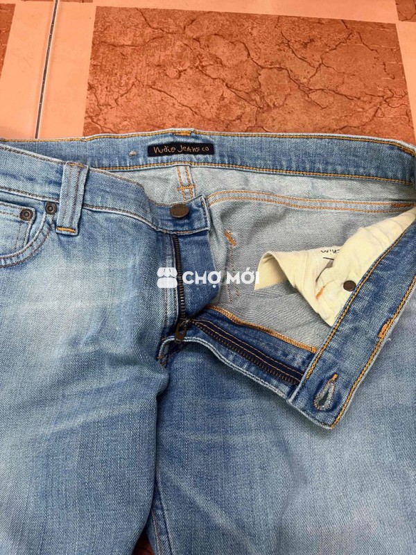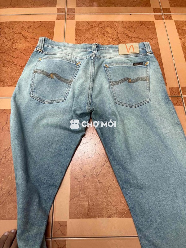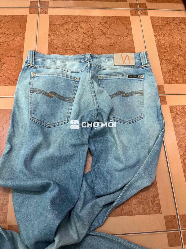 Quần jean Nudie Jeans Co màu xanh nhạt, chất liệu denim bền đẹp. - Thiết kế unisex, phù hợp cho cả nam và nữ. - Dễ phối đồ, tạo phong cách trẻ trung, năng động.