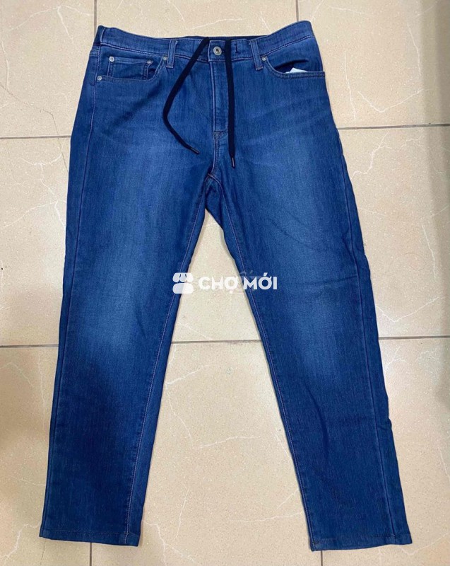 Quần jean nhật cạp chun, dây rút, Hiệu Uniqino, size 33. Vòng eo 86-90cm, dài 98cm, ống 17cm. rất mới , chất Jean cực đẹp (có có dãn mạnh), fom dáng, màu đẹp, hợp thời trang;