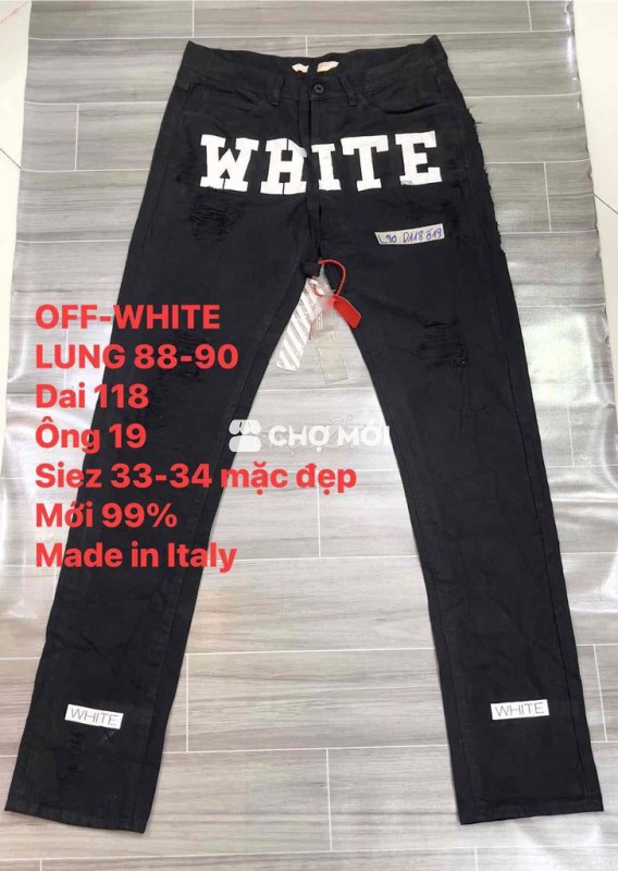 Quần jean OFF-WHITE nam màu đen, size 33-34, chất liệu vải jean cao cấp từ Ý. - Thiết kế hiện đại, phong cách. - Tình trạng mới 99%, còn rất đẹp. - Phù hợp nhiều dịp, dễ phối đồ.