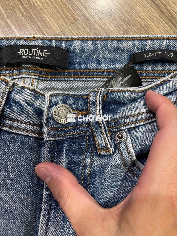 Trc mua của Routine size 29 kích thước mình có đo ghi ở ảnh. Chắc ai cỡ 1m65-1m8 nặng 50-65kg lf vừa. Màu xanh bò basic dễ phối đồ. Còn rất mới . Chất mặc oce . Mua new hơn 8L pass 199K