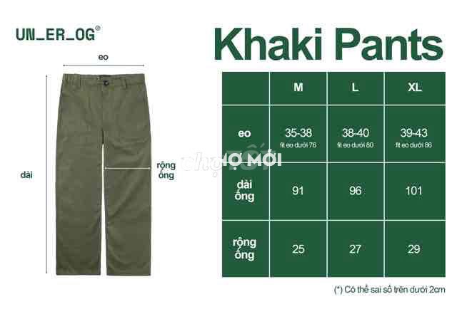 Quần ống suông unisex size M có bảng số đo