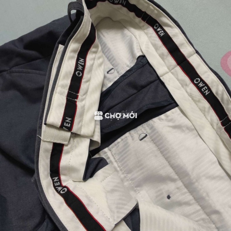 Quần OWen mới 98% bị sửa bóp lại ống và lên lai,èo lưng thun co giãn từ 30-32,eo 80 dài 92 ống 16, bác nào cần nt em