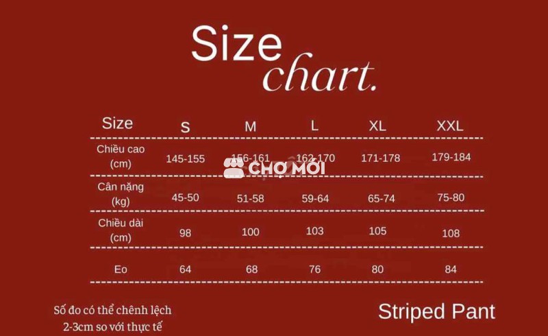 Quần suông kẻ sọc đen Size M Mặc 1 lần nên còn khá mới, ib mình gửi chất vải