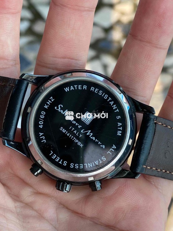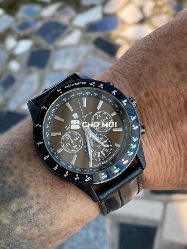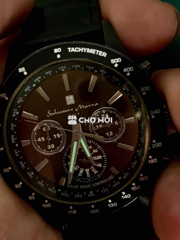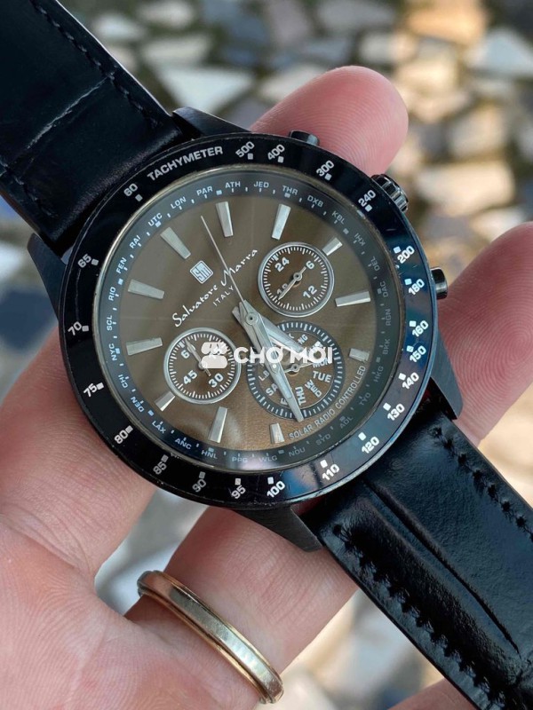 Salvatôre Marra hịu Ý Vỏ inox ram đen bóng tỉnh điện,dây da Mặt socola,cọc vạch sáng nổi,kim lanh dạ quang,3kim 3cốt chornoghap quăng kim Tổng thể 95% Xchăm ***