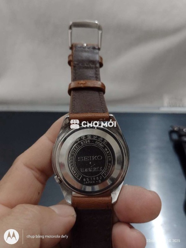 Seiko 5126-8060. Size: 37mm. Sx: 1968 Máy tự động 23 jewels đẹp chạy tốt các chức năng. Vỏ thép kim cọc mặt zin sáng đẹp, dây khóa lk Giá: 950k. Cod cọc 200k Ck hết bao ship Nhanh Lh: alo,zalo,chotot