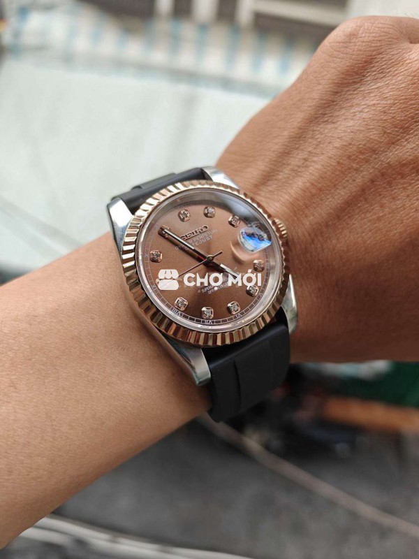 Seiko Mod Automatic NH35 24j Size 36mm dáng datejust lên tay to. -- Mặt nâu siêu sáng niềng khía sáng Núm xoáy nắp xoay . Có cót phụ 1tr400 Rrrr