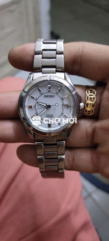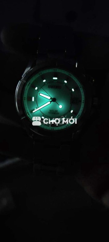 Seiko pin năng lượng khỏe mặt trắng ngà kim cọc dạ quang sáng rực dây vỏ titanium siêu nhẹ toàn bộ zin hết