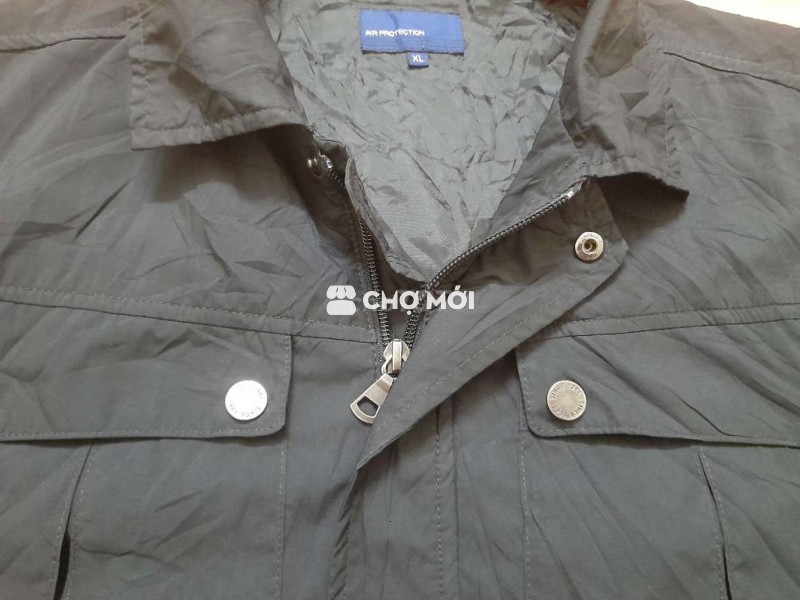 UNQ 2 lớp chất polyeste chính hãng màu đen sẫm dáng sơmi mặc gọn người zip YKK chuẩn chỉ size L/XL ok Vai 48 ngực 60 dài 72