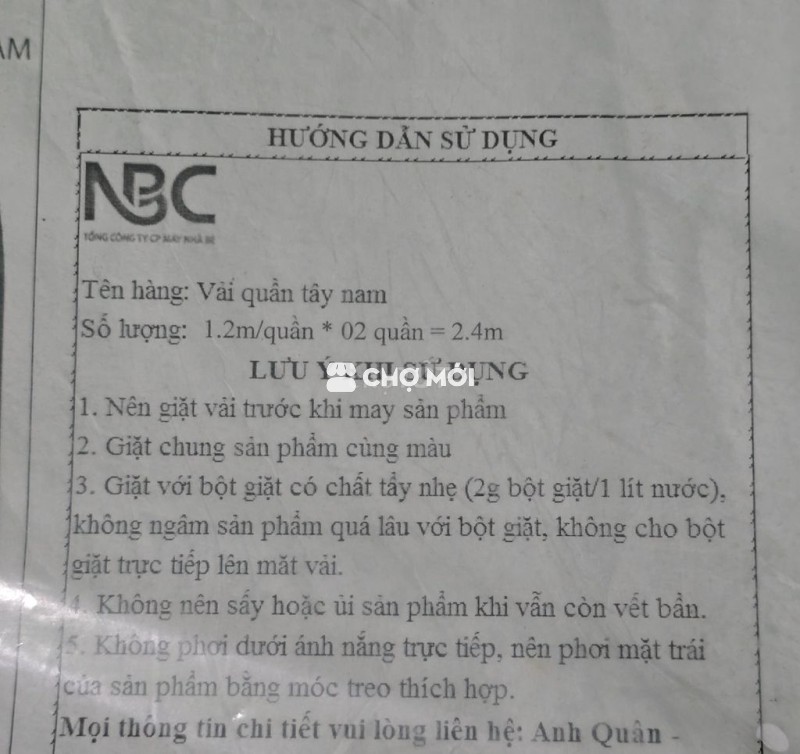 - vải đen may quần tây. - kích thước là 2.4 mét. - đồng phục do công ty phát. - thương hiệu vải Nhà bè