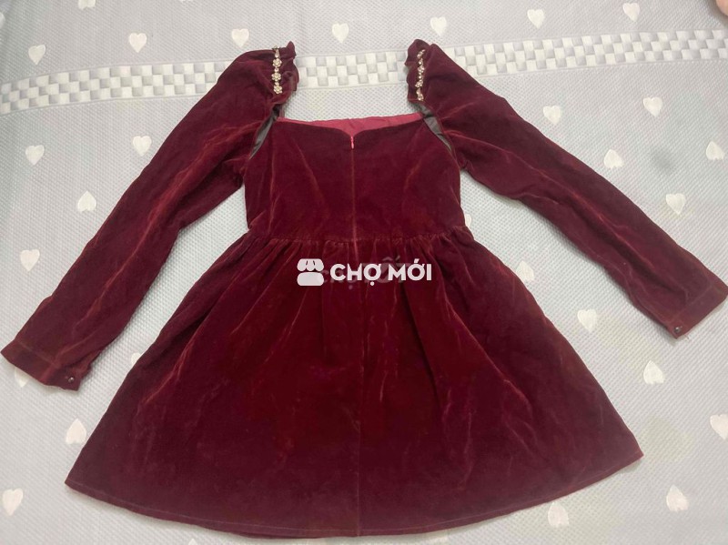 Váy xòe nhung đỏ siêu tôn da Dáng xòe cổ vuông dưới 50 kg mặc vừa Ai cần liên hệ em ạ.