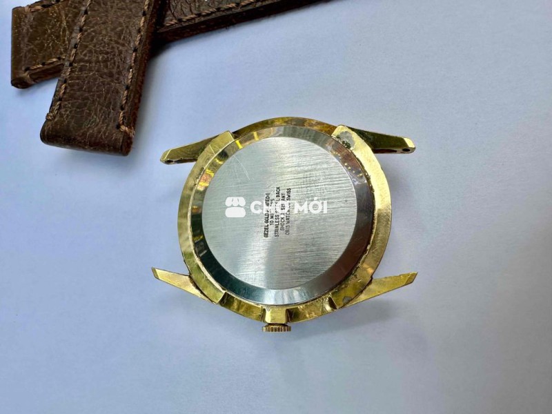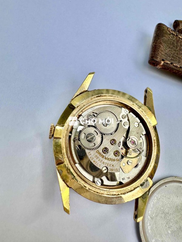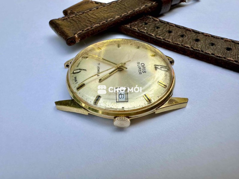 Vintage Oric super 17jw swiss made Size 35mm, Mặt tràn viền mâm trắng Chải tia Cơ Cót tay 1 lịch date hoạt động chuẩn xác giờ và lịch Bọc vàng 10 micron Kèm Dây da may tay 18mm