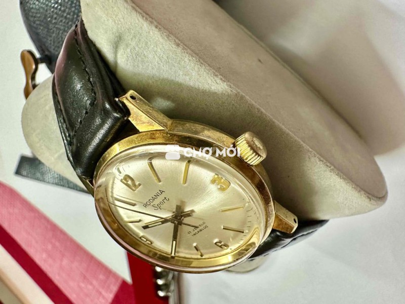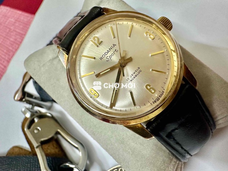Vintage Rodania Swiss made 33mm Metal bezel Size 33mm Cơ Cót tay, Vàng lên bã trầu, Rất đẹp cổ điển Bọc vàng 10micron Mặt mâm trắng Chải tia 17jw Hoạt động chuẩn xác giờ