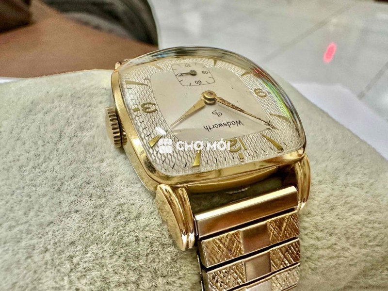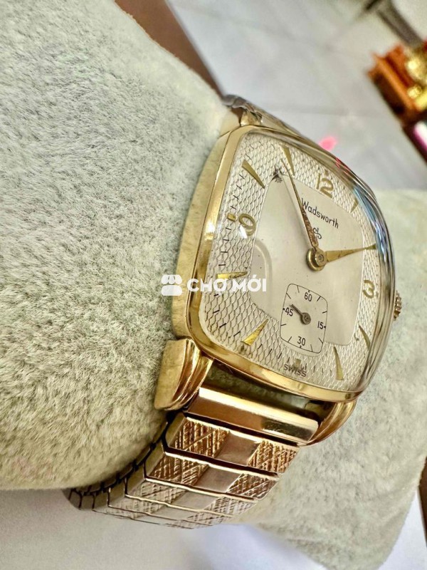 Vintage Tank wadsworth 29mm 10K gold bezel Size 29mm Kim rốn Mặt 2 lòng, vân nổi, Cơ Cót tay, size Dây 17mm , Kèm dây chun USA thụt thò