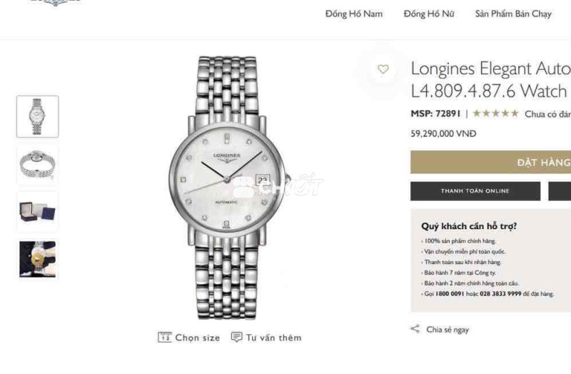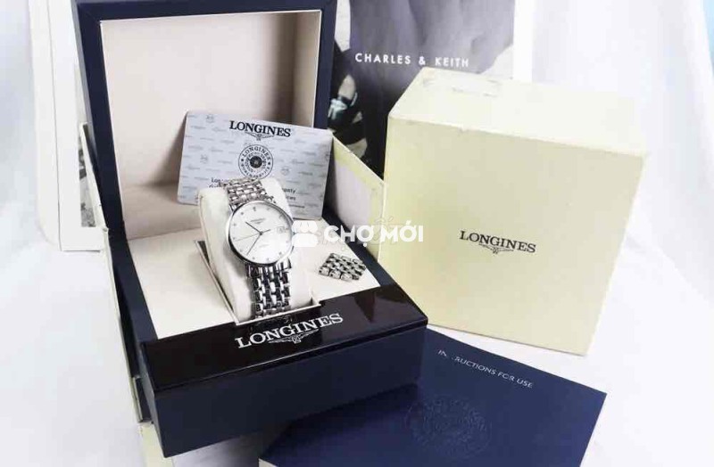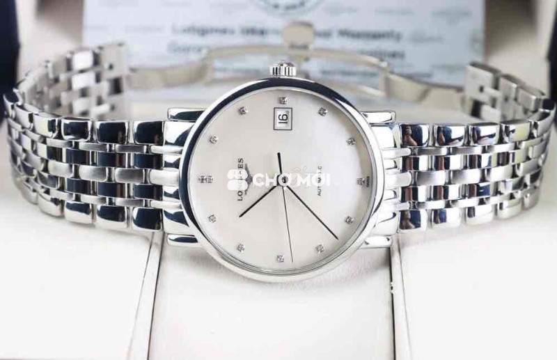 Đồng Hồ Nam : Longines Elegant Automatic, mặt xà cừ, cọc số đính 12 viên Kim Cương Fullbox....